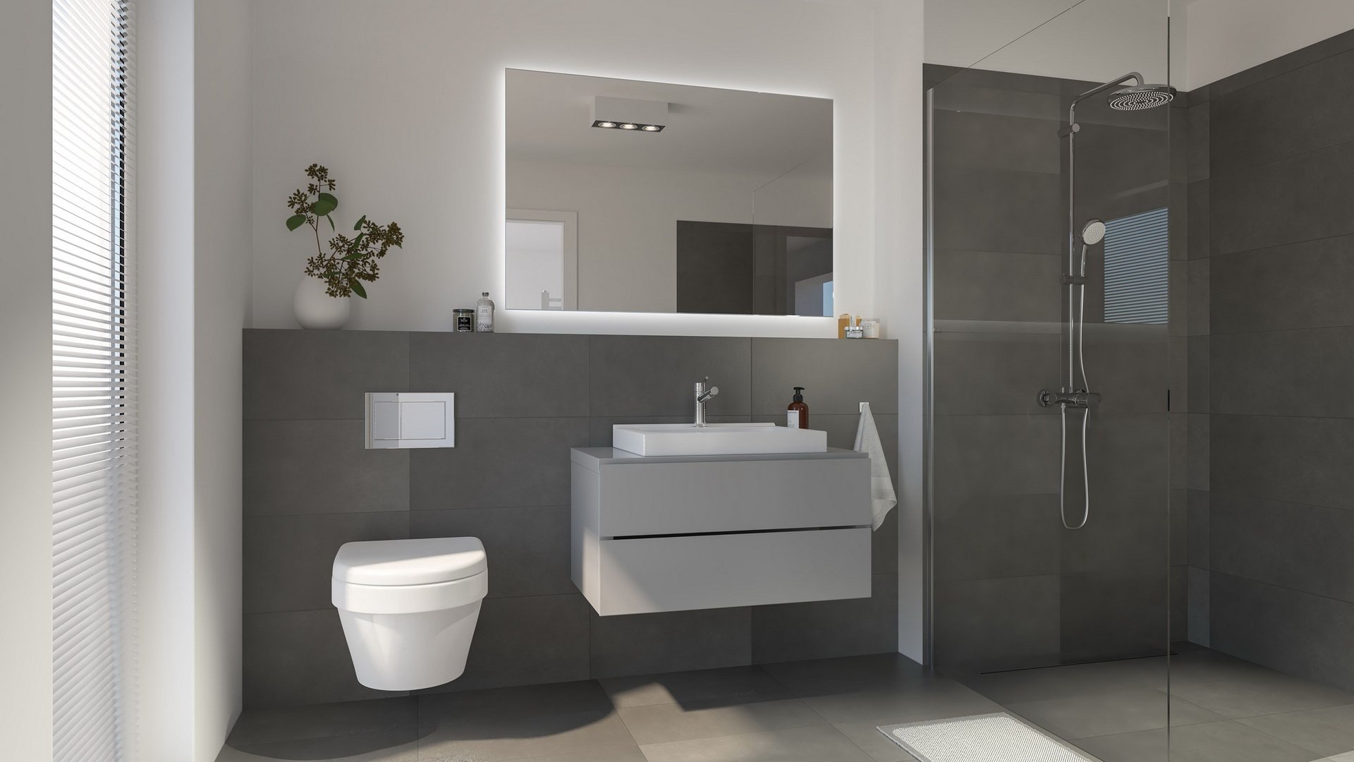 - Ceramic tile in bathrooms