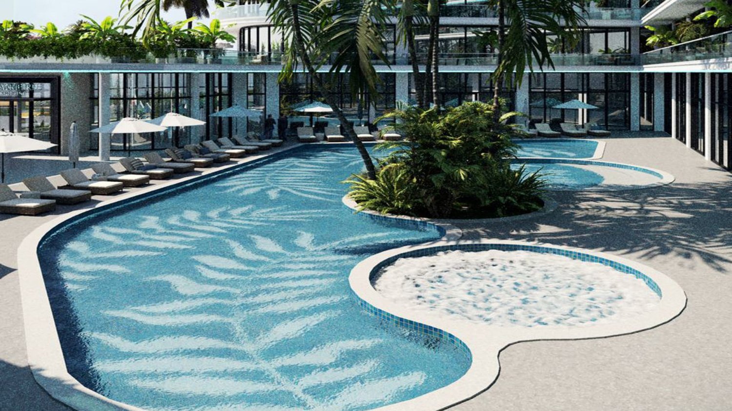 - Common area with pool