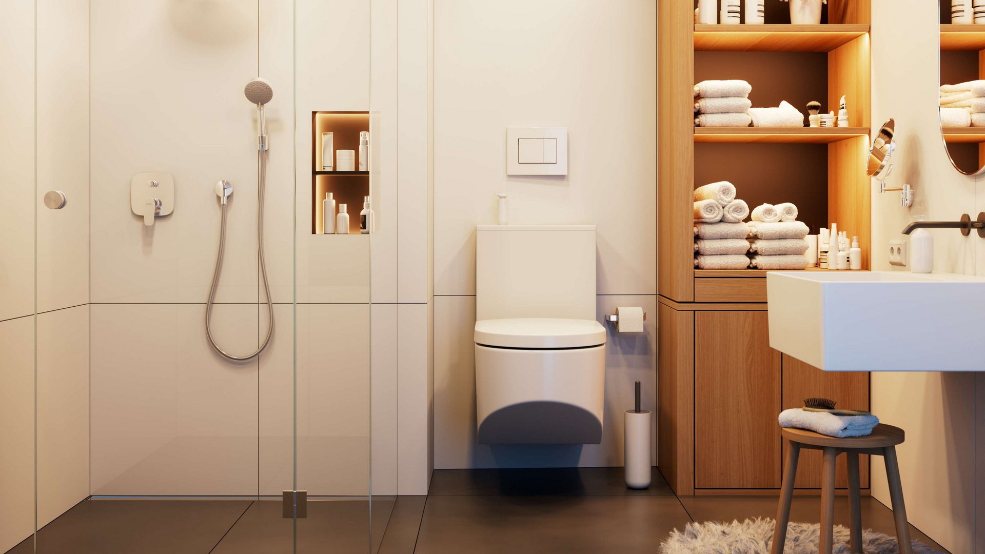 - Керамическая плитка в ванных комнатах