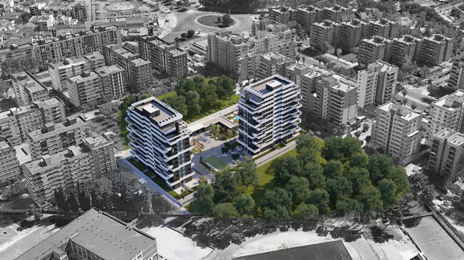 - Landscaped green area