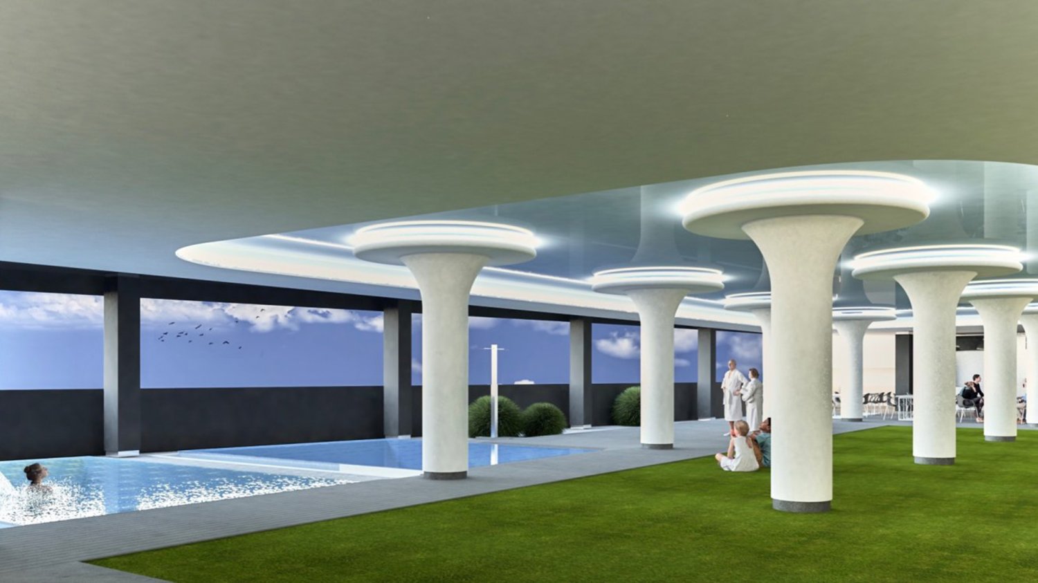 - Common area with pool