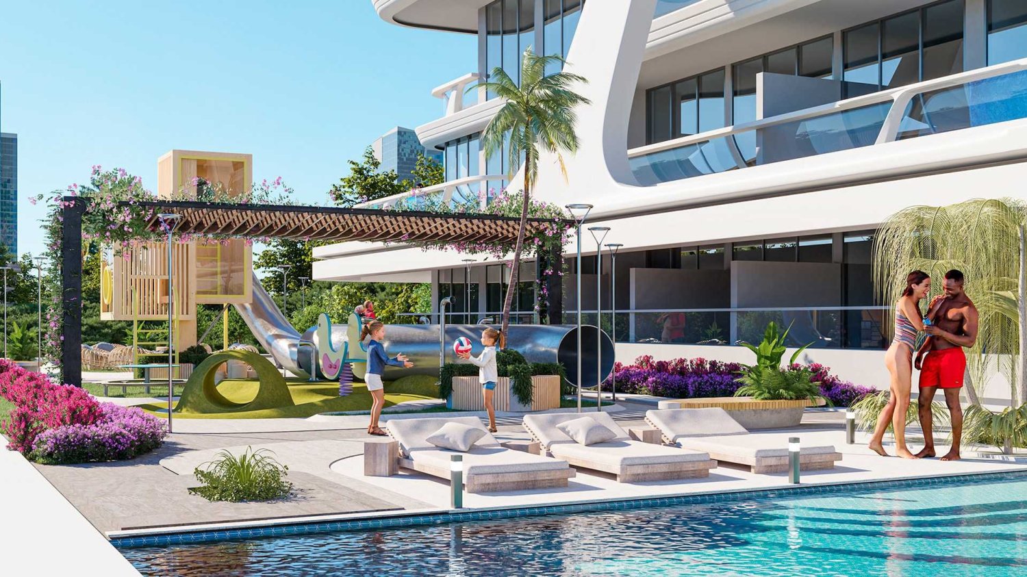 - Common area with pool