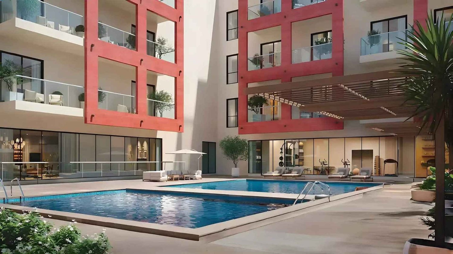 - Common area with pool